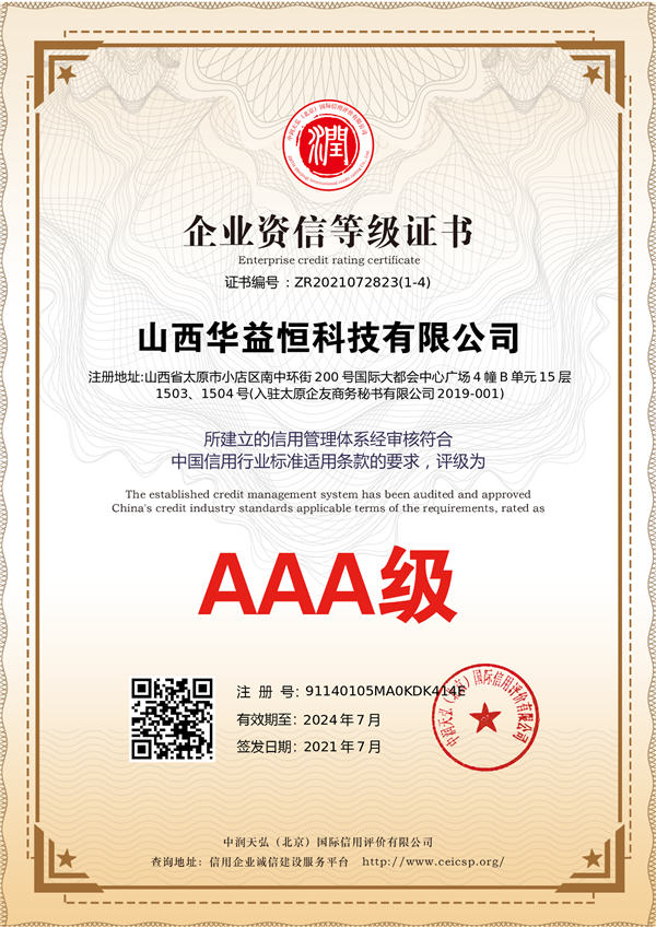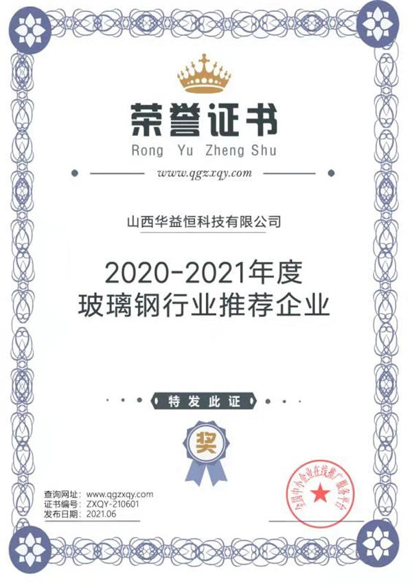 ↑ 華益恒--中國玻璃鋼行業AAA級誠信單位證書